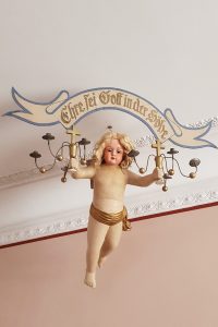 Das Engelzimmer beschäftigt sich mit einer sehr alten Tradition des Erzgebirges. So werden Engel bereits um 1500 mit dem Bergbau der Region in Verbindung gebracht.