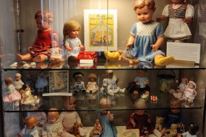 Die Sonderausstellung im Weihnachtshaus gibt Einblicke in die Geschichte der Puppen und zeigt punktuell die Entwicklung auf. So bekannte Marken wie Schildkröt und Käthe Kruse sind ebenso vertreten wie touristisch beliebte Trachtenpuppen. Nicht fehlen darf auch der typische Korbkinderwagen aus den 1950er-Jahren, natürlich mit den zeitgemäß gekleideten Babypuppen. Beispiele für die Herstellung von handgestrickten Socken, Höschen und Mützen sind ebenso zu sehen wie historische Belege aus der Puppenherstellung und Vermarktung.